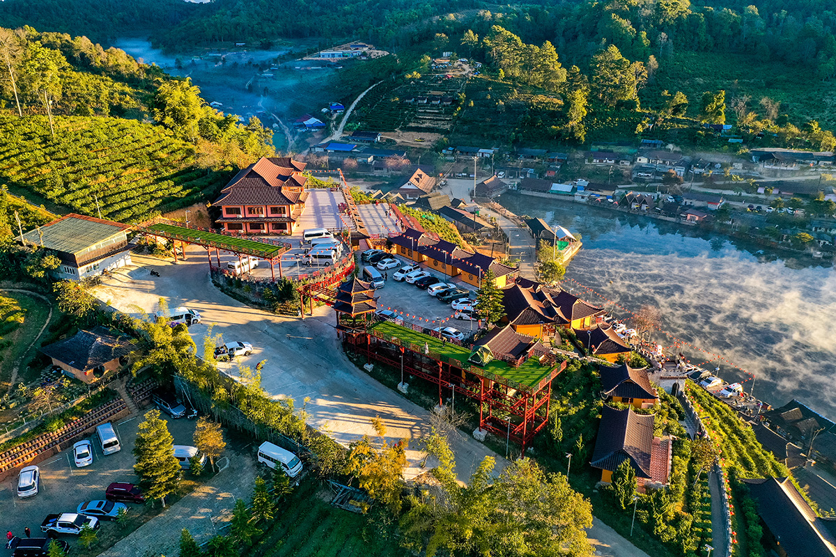 Not far from Pang Ung, which in the past was a Yunnan Chinese village. Not far from the Myanmar border, Because it is a high area This place is famous for growing tea.