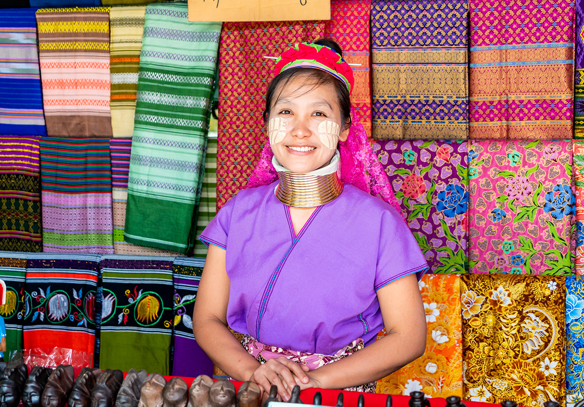 Long Neck Karen Village, Huai Sua Tao, has about 20 households who have migrated as refugees from the war to live in Mae Hong Son for a long time. traditional lifestyle and culture surrounded by forest It is a Karen village near the city. And cars are accessible, making it a lot of tourists to visit. to see the way of life and well-being Within the village there is a place that sells various souvenir products for tourists. by most products will be woven decorations In addition, there are products that are picked up from other places for sale, such as clothes, bags, bedspreads, etc.