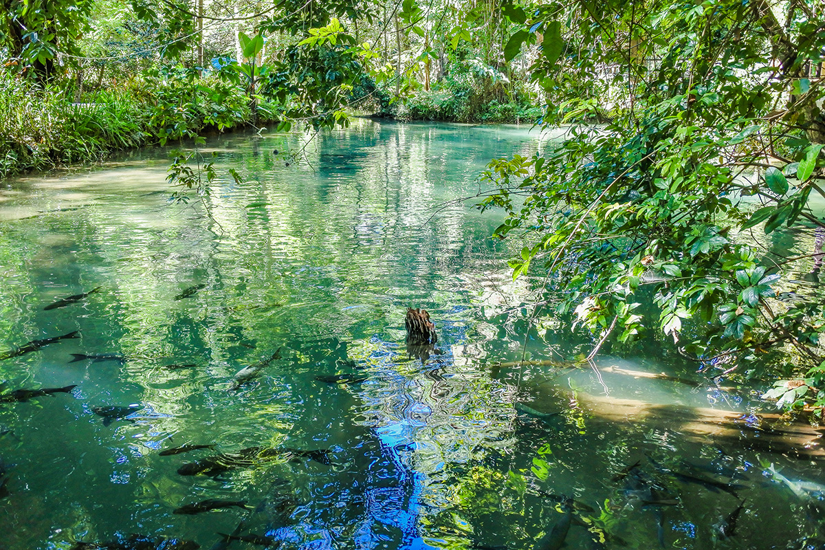 Tham Pla is located at the foot of a hill in Tham Pla-Pha Suea Waterfall National Park. There is a large basin about 2 meters wide and 1.5 meters deep. Inside the cave there is a pool of water that flows all the time. There are many fish such as antimony fish or in the northern language called fish belly or fish mung. This type of fish like to live in waterfalls and streams in the forest. Has large scales in the same family as carp